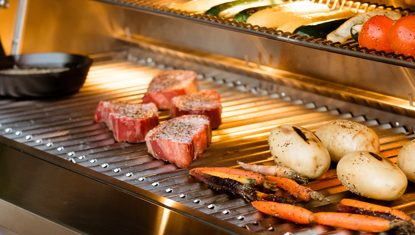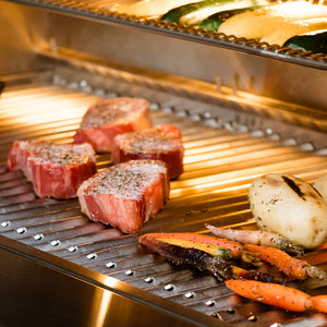 Cook over open flame or hot coals in record time. Use wood in only a few fuel trays for a smokey flavor or sear over the gas burners or coal. The options are endless.