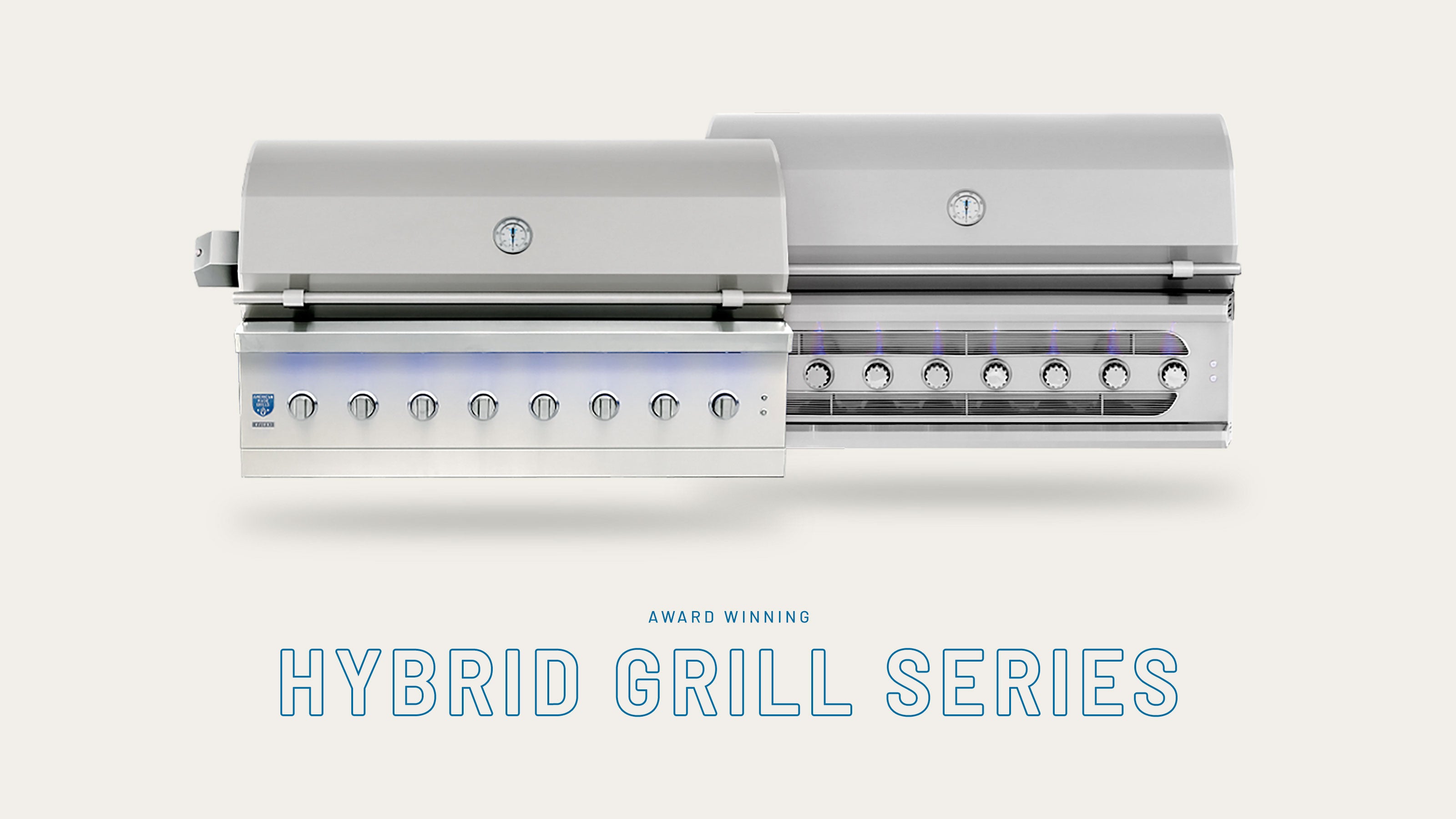 Our Hybrid Grills are all about quality: industry-top stainless steel construction, ridiculously high BTU output, innovative accessories, and diverse fuel sources. Whether a freestanding cart or as the built-in centerpiece of an outdoor kitchen, these luxury powerhouses will be the envy of all. There has never been a grill like it, nor has there ever been a cooking experience available to match.